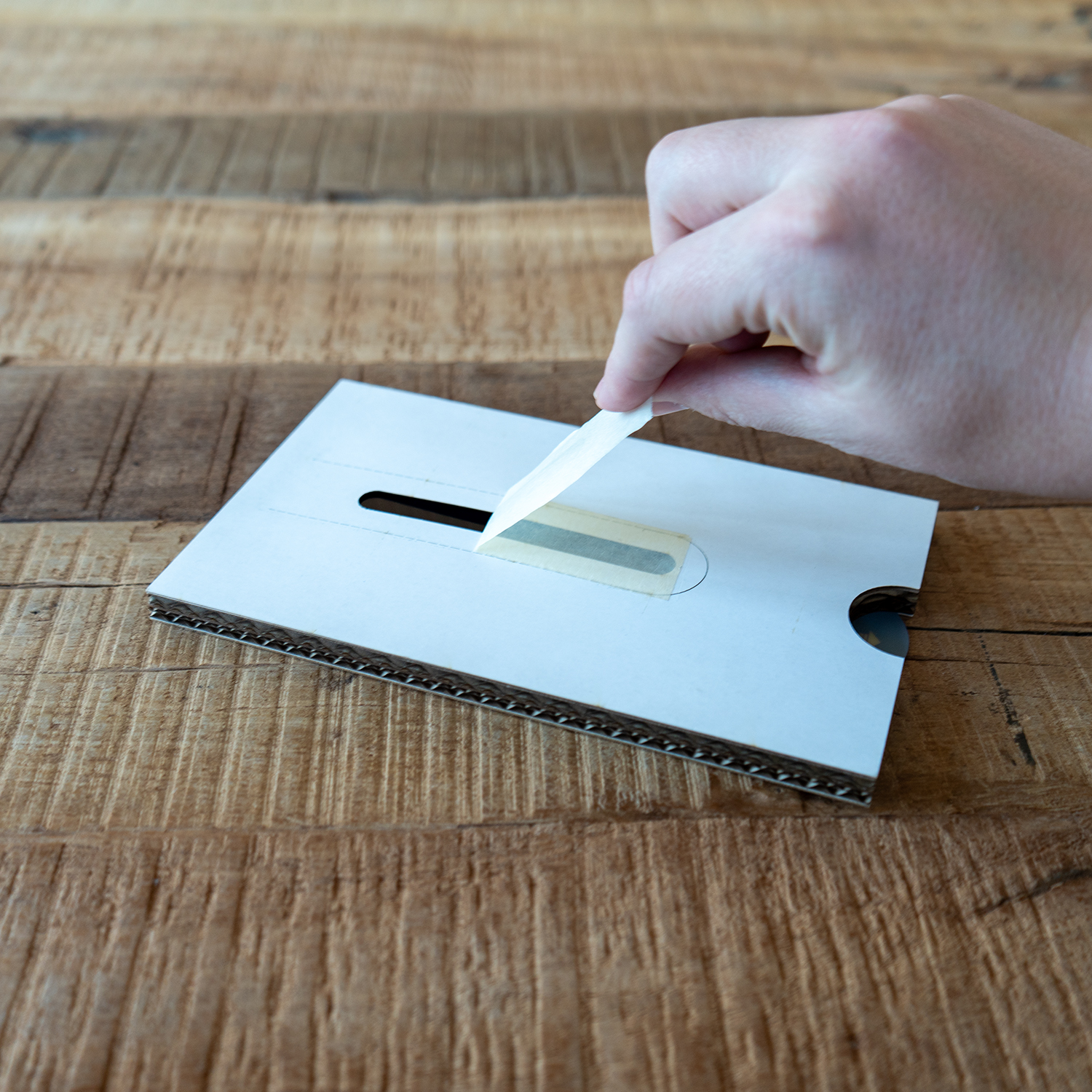 Unsere Lösung ersetzt Kunststoffhilfen durch einen präzisen, benutzerfreundlichen Pappmechanismus.